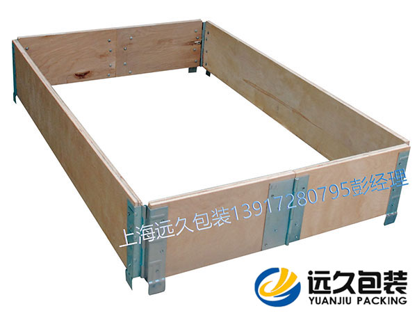 圍框是由四片或六片木板和合頁(yè)組成的一種標(biāo)準(zhǔn)的物流器具,是為在免熏蒸托盤上堆放緊固件、金屬球、沖壓件等不規(guī)則產(chǎn)品而特定設(shè)計(jì)的,一款可反復(fù)循環(huán)使用的新型包裝,是軸承類五金產(chǎn)品出口到歐洲產(chǎn)品包裝的不二選擇。 圍框的結(jié)構(gòu):合頁(yè)固接于相鄰的兩片木板的角部,頁(yè)體下部具有向下延伸并向外彎的合頁(yè)腳,合頁(yè)腳內(nèi)側(cè)套接于托盤的角部外側(cè)或下一段圍板轉(zhuǎn)角處。圍框的長(zhǎng)、寬根據(jù)托盤的尺寸確定,由于無(wú)釘化作業(yè),顯著地降低了工人在裝卸過(guò)程中發(fā)生工傷的風(fēng)險(xiǎn)。 圍框可分為木圍框和膠合板圍框,兩者的結(jié)構(gòu)一樣,唯一的區(qū)別也是最大的區(qū)別就是材質(zhì)不同,膠合板圍框是用高強(qiáng)度的膠合板制作而成,優(yōu)點(diǎn)是出口免熏蒸,在出口運(yùn)輸?shù)臅r(shí)候,省去了許多的中間環(huán)節(jié),節(jié)省了大量的時(shí)間,由于材質(zhì)的本身特性等多方面原因,膠合板圍框一次性使用居多,膠合板圍框不利于回收,回收利用率不高,所以市面上很少有流通的二手膠合板圍框。 膠合板圍框的長(zhǎng)、寬根據(jù)托盤的尺寸確定,使用層數(shù)可根據(jù)承載物的高度來(lái)決定,最大限度地提高箱體空間的利用率。運(yùn)輸時(shí)可將膠合板圍框的圍板折疊為雙層或四層相連接的膠合板板結(jié)構(gòu)擺放在托盤上,大大地減少貯運(yùn)體積,有效的降低運(yùn)輸成本。