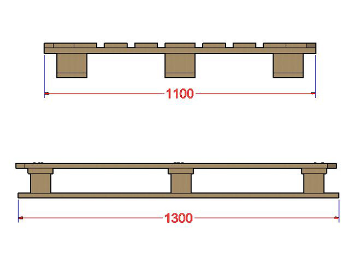 歐標托盤系列CP 4號化工木托盤各部件板材規格及性能 木托盤構成部件 面板+墊板+方塊/橫檔+底板 部件名稱 規格 數量 承載重量 靜載3000kg 動載1500kg 兩側及中間頂鋪板 1300*120*18 3 木托盤材質 優質松木 中間頂鋪板 1300*900*18 6 結構 雙向四面進叉結構 橋板 1100*100*22 3 適用范圍 物流倉儲,食品運輸,工廠倉庫,陶瓷建材,五金電器,機械儀器及化工桶等行業的產品出口時使用 墊塊 80*80*120 9 熏蒸熱處理 熱處理/熏蒸木托盤是指經過除害處理,可以隨出口貨物出境的木質包裝托盤(木托盤),并加施IPPC標識 底板 1300*120*18 3 證書 出口時可根據客戶需要,提供熱處理消毒證書,并加施IPPC標識 優質螺紋釘 64mm 87 CP 4號化工木托盤優點 精確度高、不易變形,用高強度木托盤專用螺紋釘連接,不會起釘,牢固性好。 CP 4號化工木托盤外形尺寸 1100*1130*138㎜ 表格制作人:上海遠久包裝托盤包裝工程師——彭百桂